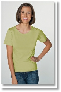 One of our most popular Ladies T-shirts. Back neck tape for comfort. Set-in sleeve. Superb quality cotton with a smooth soft feel. The smooth knit gives an excellent surface for a screen print.