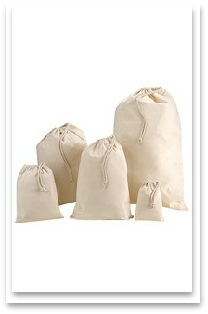 Cotton stuff bag with rope draw cord closure.