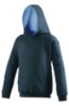 Twin needle stitching detail, double contrast hood with contrast inner. Kangaroo pouch pocket with small opening for ear phone cord feed, hidden ear phone loops. Ribbed cuff and hem. Worldwide Responsible Apparel production (WRAP) certified production.
